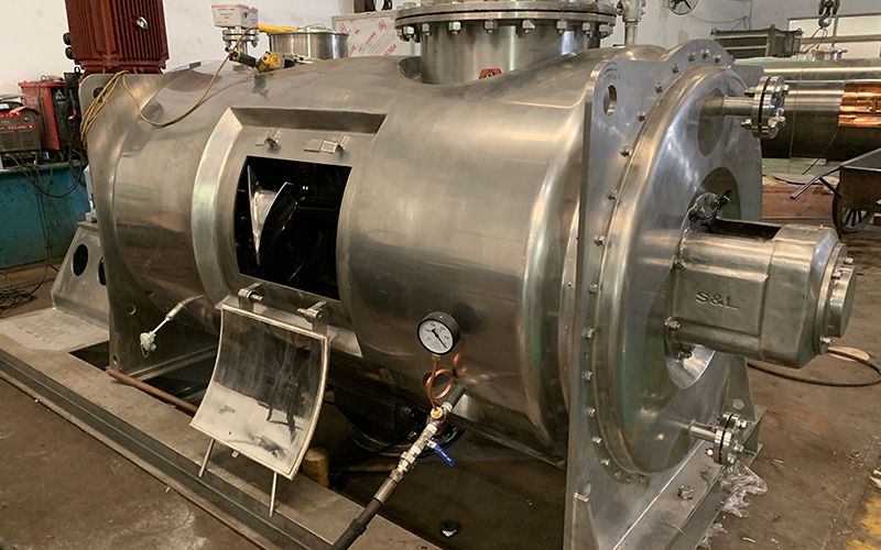 - Misturador de pás O misturador de pás S&L, também chamado de misturador de zona fluidizada, é um misturador industrial para misturar pós secos e aditivos líquidos. É composto por um recipiente cilíndrico horizontal, unidade de acionamento e pás de eixo duplo, e pode ser equipado com um quebra-grumos. Durante a operação, os dois eixos com pás rotativas que giram para lados diferentes, acionando a pá em ângulos diferentes para circular e virar os materiais nas direções axial e radial. Sob o efeito da alta velocidade linear, os materiais são lançados para cima e caem em um estado de ausência de peso (ou seja, gravidade zero). Descubra mais